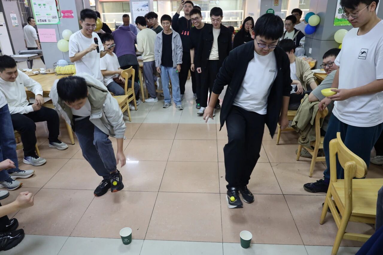 活动核心的包饺子环节,现场以 5-6 人为一组有序分区,桌案上整齐陈列白菜鲜肉、韭菜鲜肉等四款经典馅料及饺皮工具。食堂师傅亲临指导捏褶、控馅秘诀,零基础同学围拢 “偷师”,熟手们则分享技巧,氛围温情十足。计时开启后,比拼兼具速度与创意:有人争当 “快手天团”,有人打磨 “颜值担当”,更有幸运坚果藏入饺皮埋下惊喜。形态各异的饺子承载着协作与祝福,最终第 3 组斩获 “最佳创意饺子” 荣誉,速度优胜组亦脱颖而出。